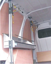 | Exemple de module à positionner au dessus du passage de roues - 1 porte escabeau - 2 montants verticaux - 1 bac inox en fonction du type de véhicule, longueur 1000 mm avec arrêt de charge | ![]() |