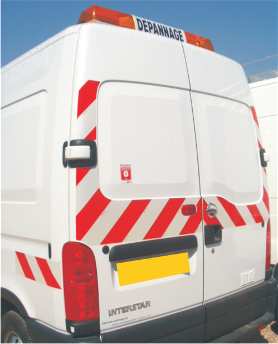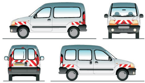 Balisage Rouleau de bande aternée de balisage véhicule. Vendu par kit de 2 rouleaux ou kit de 10 bandes alternées. Kit balisage véhicule prédécoupé. Bandes rétro réfléchissantes blanches et sérigraphie rouge.