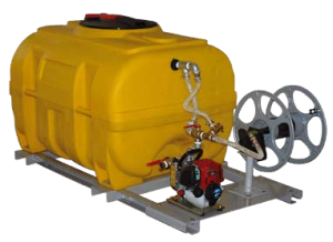 Cuve complète Polyester sur plateau permettant l’arrosage, le remplissage et le brassage. Circuit équipé d’une soupape de sécurité avec pompe. Remplissage de la cuve à partir d’un point d’eau grâce au kit d’aspiration fourni ( 7 m de tuyau ) Brassage de l’eau dans la cuve avec d’éventuels additifs ( ex : fertilisants ). Groupe motopompe Honda 130 L/min pour les cuves jusqu’à 1500 litres et 240 L/min à partir de 2000 litres. Dévidoir simple pouvant recevoir 25 mètres de tuyau Ø19 mm. Soupape de surpression permettant de protéger la motopompe. A fixer sur plateau de camion. Existe en cuve de 600, 1000, 1500, 2000, 3000, 4000 et 5000 litres. Tuyau et lance en option sur simple demande.
