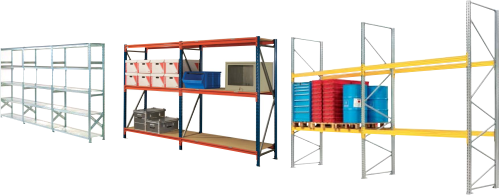 ![]() | Gamme complète de rayonnage comprenant du rayonnage léger ( les archives, les bureaux ... ), du rayonnage mi-lourd, du rayonnage lourd ( les palettes ... ) et les portes barres, cantilever, rayonnage à tiroirs et rayonnage mobile. |