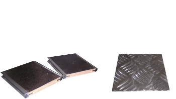- Plancher bois, avec insert en extrudé d’aluminium, en bouleau et conifère multiplis avec revêtement phénolique de 12 mm imprégné de résine sur les deux faces et traitement anti-usure et anti-dérapant sur la face utile.